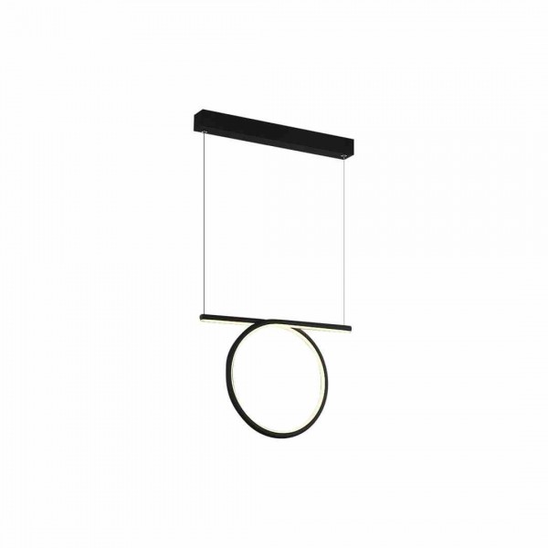 Lampa sufitowa z kolekcji Loop charakteryzuje się oryginalnie ukształtowanym, wymiennym modułem LED. Zainstalowany w wykończonej w czarnym, matowym kolorze oprawie moduł ma moc 60 W, które odpowiadają 300 W tradycyjnej żarówki. Do tego strumień świetlny 4200 lm o neutralnej przyjemnej dla oka barwie 3000 K. Lampka ma 80 cm długości i 8 cm szerokości. Jej wysokość można regulować na przewodzie, dzięki czemu można dopasować ją do różnego typu pomieszczeń. W zestawie oprócz lampy znajdują się niezbędne elementy do jej montażu.